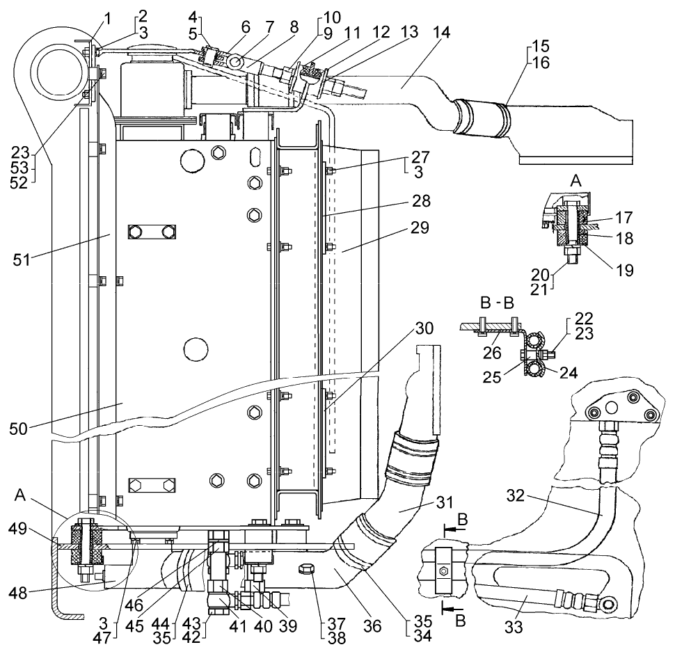Установка радиаторов (для трактора с «обратным» потоком)
