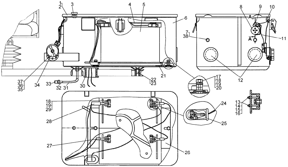 Установка аккумуляторных батарей трактора с механической трансмиссией, с электростартерной системой пуска