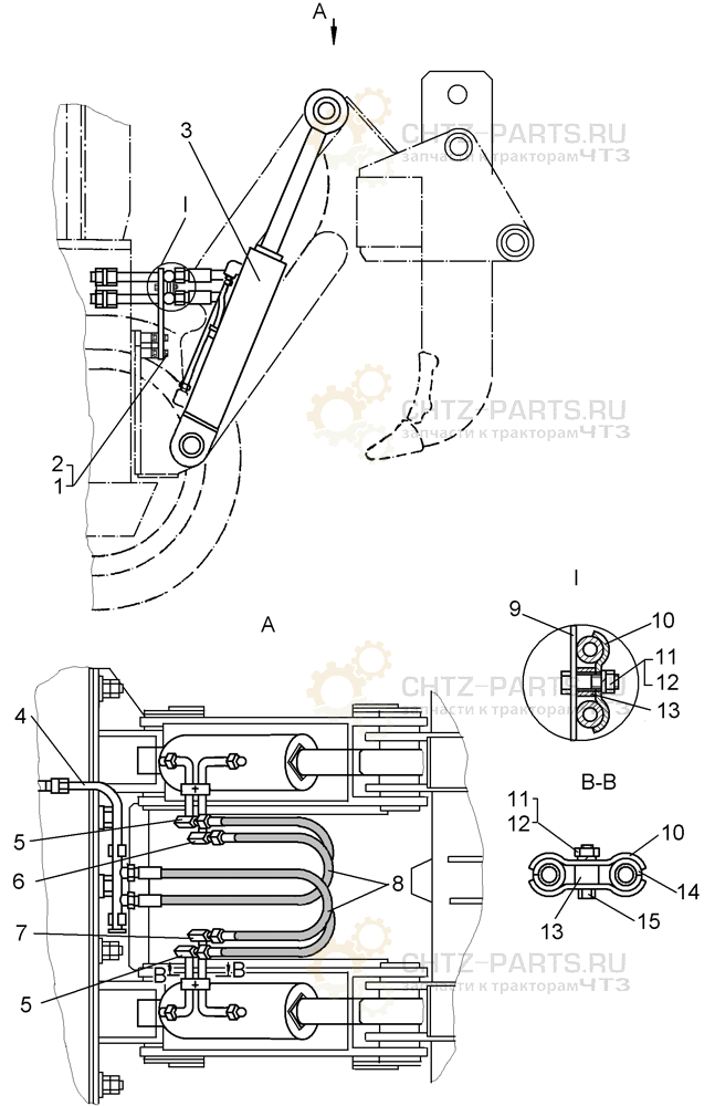 Установка гидроцилиндров и трубопроводов Р и Н на Б10М