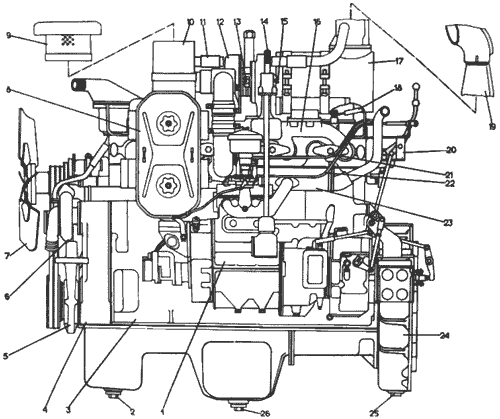 - Проверить исправность рукавов между турбокомпрессором 12, воздухоочистителем 8 и патрубками.
