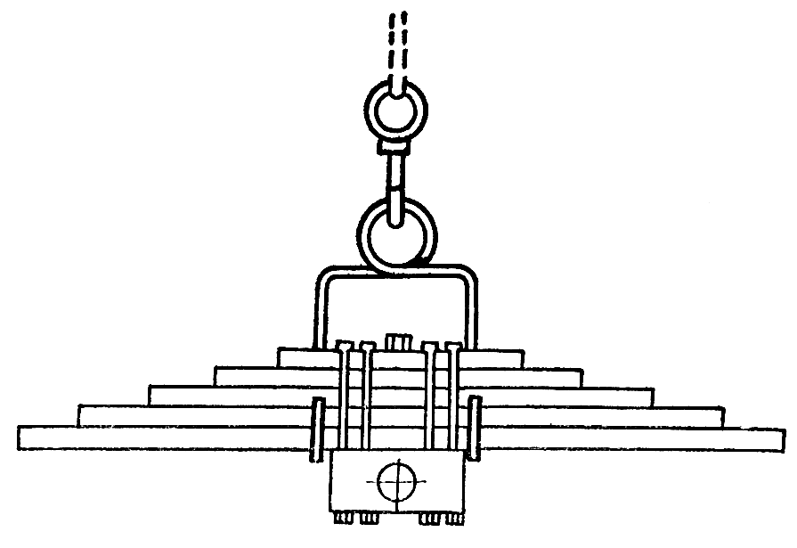 Передвиньте балансирную рессору из-под трактора в сторону снятой тележки гусеницы, прикрепите ее к подъемнику ( рис. 307 ) и выведите полностью из-под трактора. Масса балансирной рессоры 225 кг.