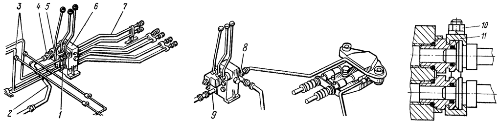 Рис. 331. Соединение маслопроводов распределителя