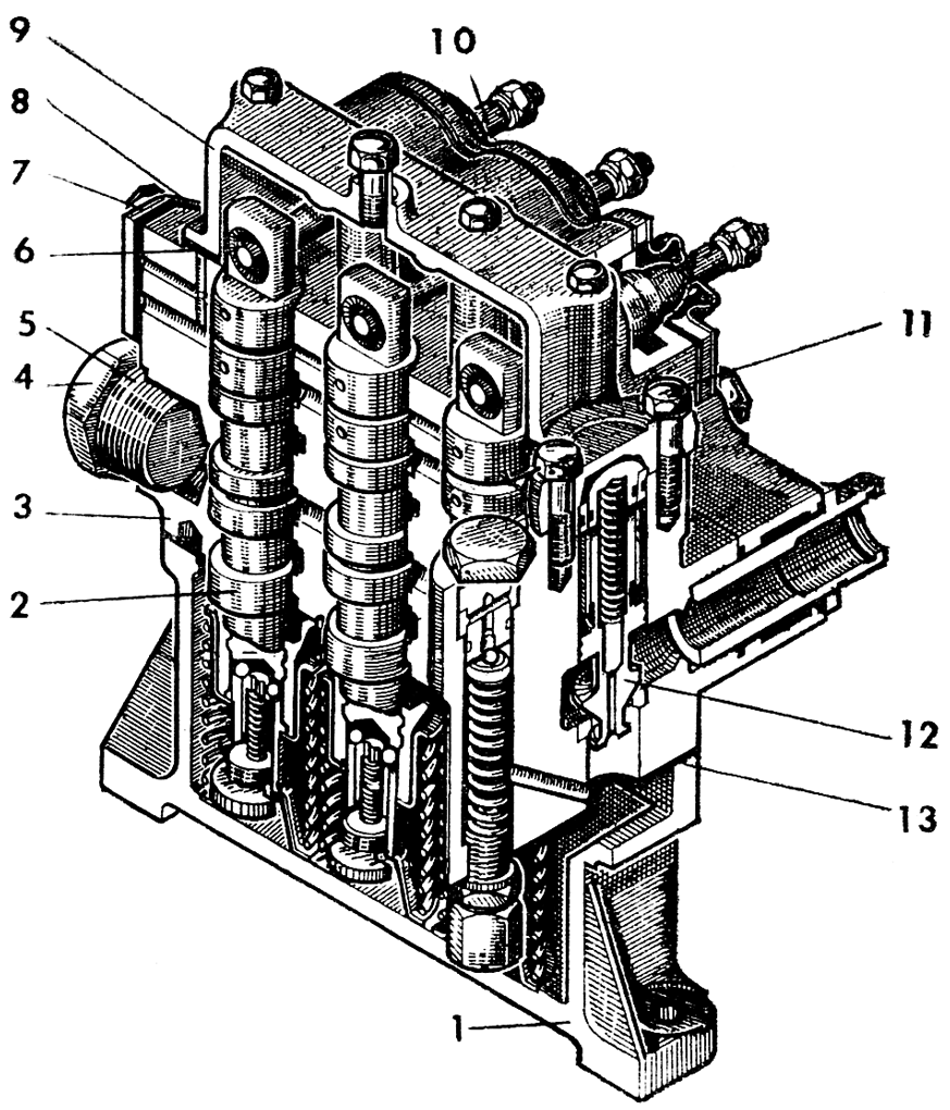 Отверните болты и снимите нижнюю, крышку 7 ( рис. 326 ) распределителя и прокладку 13. Выньте из корпуса 3 три золотника 2. Золотники скомплектованы с отверстиями в корпусе, поэтому при разборке обратите внимание на наличие цифровой маркировки размерных групп отверстий в корпусе и на золотнике, для того чтобы при сборке установить их в прежние отверстия корпуса одной размерной группы.