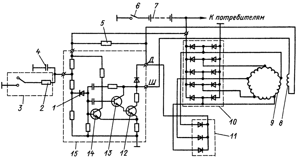 Обрыв цепи катушки возбуждения Разобрать генератор, спаять и изолировать место повреждения, а при невозможности устранения данного дефекта заменить катушку возбуждения